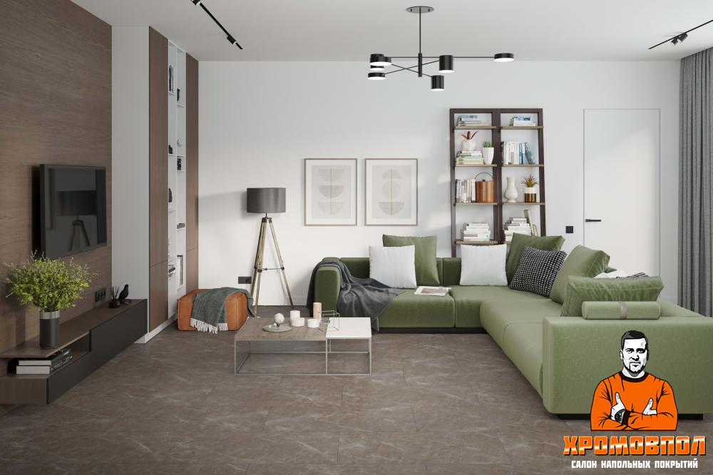 Помещение с LVT-плиткой DAMY FLOOR выглядит эффектно и благородно.