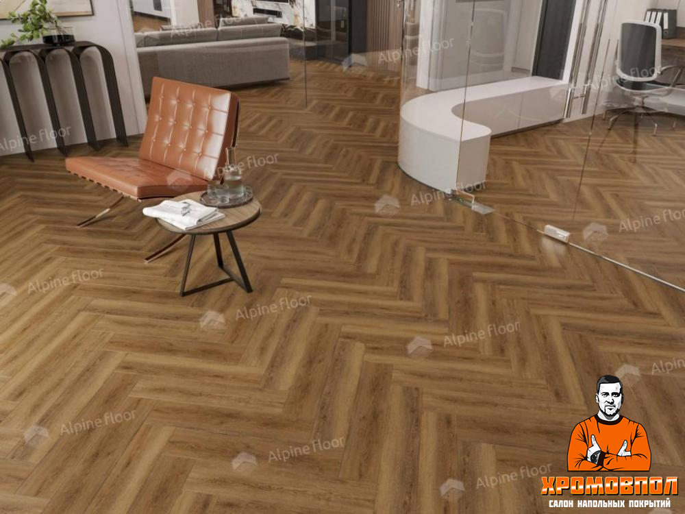 Alpine Floor Parquet Light — коллекция водостойкого и износостойкого напольного покрытия 43 класса (защитный слой 0,55 мм), который можно укладывать дома, в промышленных и высокопроходимых общественных помещениях. Коллекция выполнена на каменно-полимерной плите (SPC). SPC — последнее поколение виниловых полов, композит из кальция и винила, как связующего материала. Материал высокой плотности, термостабильнее других видов виниловой плитки, не боится воды и способен выдерживать высокую нагрузку на замки. Parquet Light имеет замковую систему позволяющие производить укладку елочкой без использования клея. В качестве основания может служить практически любое твердое основание: деревянный пол, керамическая плитка, фанера, OSB, ДСП, несыпучая стяжка, наливной пол и т.д. Можно укладывать на любой теплый пол, но температура нагрева не должна превышать +27 °C.