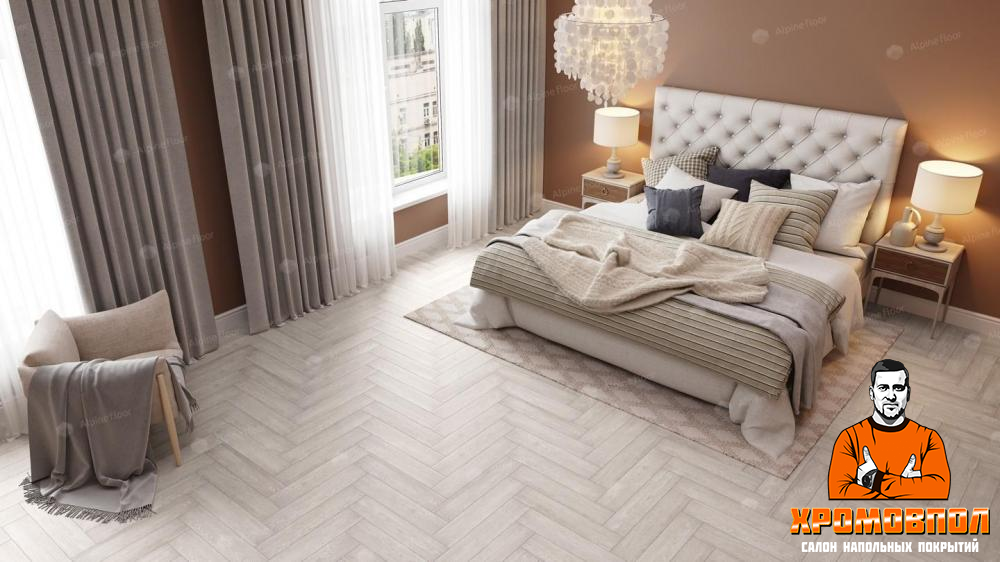 Alpine Floor Parquet Light — коллекция водостойкого и износостойкого напольного покрытия 43 класса (защитный слой 0,55 мм), который можно укладывать дома, в промышленных и высокопроходимых общественных помещениях. Коллекция выполнена на каменно-полимерной плите (SPC). SPC — последнее поколение виниловых полов, композит из кальция и винила, как связующего материала. Материал высокой плотности, термостабильнее других видов виниловой плитки, не боится воды и способен выдерживать высокую нагрузку на замки. Parquet Light имеет замковую систему позволяющие производить укладку елочкой без использования клея. В качестве основания может служить практически любое твердое основание: деревянный пол, керамическая плитка, фанера, OSB, ДСП, несыпучая стяжка, наливной пол и т.д. Можно укладывать на любой теплый пол, но температура нагрева не должна превышать +27 °C.