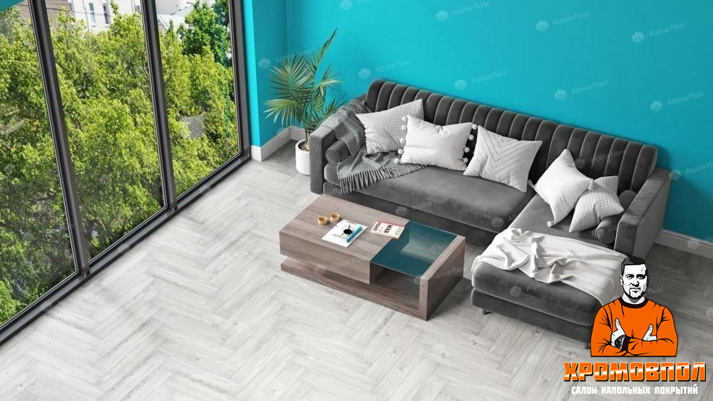 Alpine Floor Parquet Light — коллекция водостойкого и износостойкого напольного покрытия 43 класса (защитный слой 0,55 мм), который можно укладывать дома, в промышленных и высокопроходимых общественных помещениях. Коллекция выполнена на каменно-полимерной плите (SPC). SPC — последнее поколение виниловых полов, композит из кальция и винила, как связующего материала. Материал высокой плотности, термостабильнее других видов виниловой плитки, не боится воды и способен выдерживать высокую нагрузку на замки. Parquet Light имеет замковую систему позволяющие производить укладку елочкой без использования клея. В качестве основания может служить практически любое твердое основание: деревянный пол, керамическая плитка, фанера, OSB, ДСП, несыпучая стяжка, наливной пол и т.д. Можно укладывать на любой теплый пол, но температура нагрева не должна превышать +27 °C.