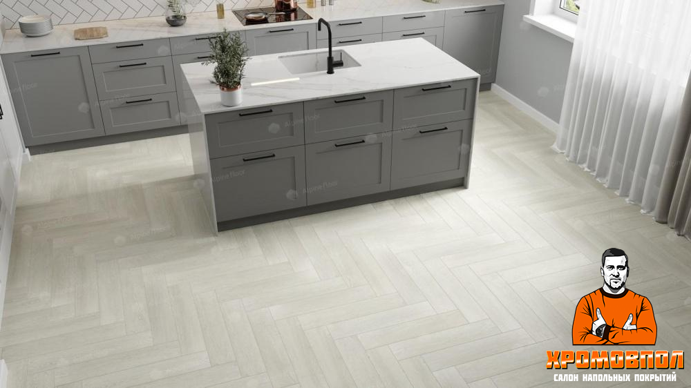 Alpine Floor Parquet Light — коллекция водостойкого и износостойкого напольного покрытия 43 класса (защитный слой 0,55 мм), который можно укладывать дома, в промышленных и высокопроходимых общественных помещениях. Коллекция выполнена на каменно-полимерной плите (SPC). SPC — последнее поколение виниловых полов, композит из кальция и винила, как связующего материала. Материал высокой плотности, термостабильнее других видов виниловой плитки, не боится воды и способен выдерживать высокую нагрузку на замки. Parquet Light имеет замковую систему позволяющие производить укладку елочкой без использования клея. В качестве основания может служить практически любое твердое основание: деревянный пол, керамическая плитка, фанера, OSB, ДСП, несыпучая стяжка, наливной пол и т.д. Можно укладывать на любой теплый пол, но температура нагрева не должна превышать +27 °C.