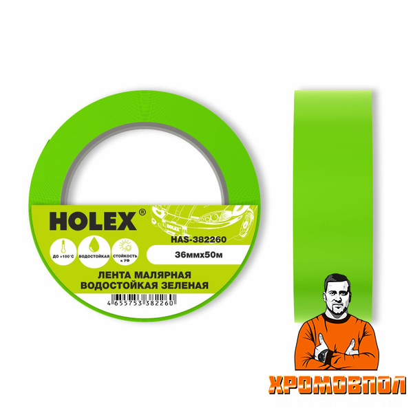 Лента малярная жаростойкая до 100°С зеленая водост.24мм*50м HOLEX