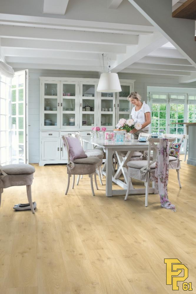 Попрощайтесь с проблемами залива водой, выбрав водостойкий пол Quick-Step. Эти полы имеют исключительно стильный и естественный вид, а также на 100% устойчивы к влаге, поэтому их очень легко чистить!