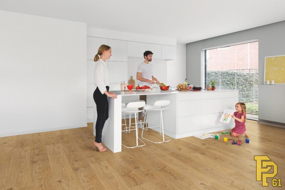 Попрощайтесь с проблемами залива водой, выбрав водостойкий пол Quick-Step. Эти полы имеют исключительно стильный и естественный вид, а также на 100% устойчивы к влаге, поэтому их очень легко чистить!
