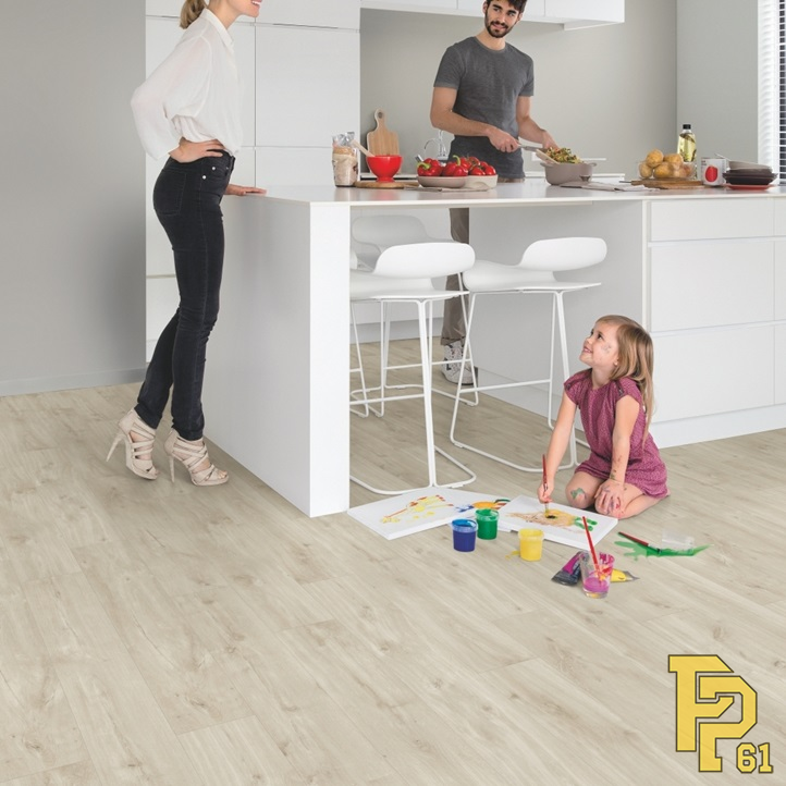Попрощайтесь с проблемами залива водой, выбрав водостойкий пол Quick-Step. Эти полы имеют исключительно стильный и естественный вид, а также на 100% устойчивы к влаге, поэтому их очень легко чистить!