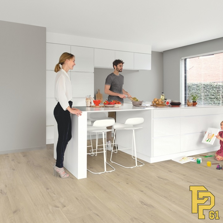 Попрощайтесь с проблемами залива водой, выбрав водостойкий пол Quick-Step. Эти полы имеют исключительно стильный и естественный вид, а также на 100% устойчивы к влаге, поэтому их очень легко чистить!